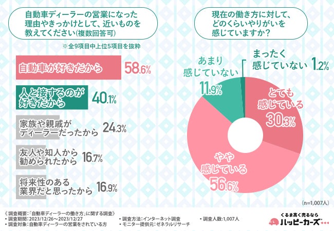 今回の調査で、自動車ディーラーの営業の約9割がやりがいを持って働いていることが明らかになりました。