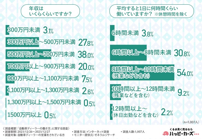 そこで今回、出張中古車買取「ハッピーカーズ(https://happycars.jp/)」を手掛ける株式会社ハッピーカーズは、自動車ディーラーの営業をされている方を対象に「自動車ディーラーの働き方」に関する調査を実施しました。