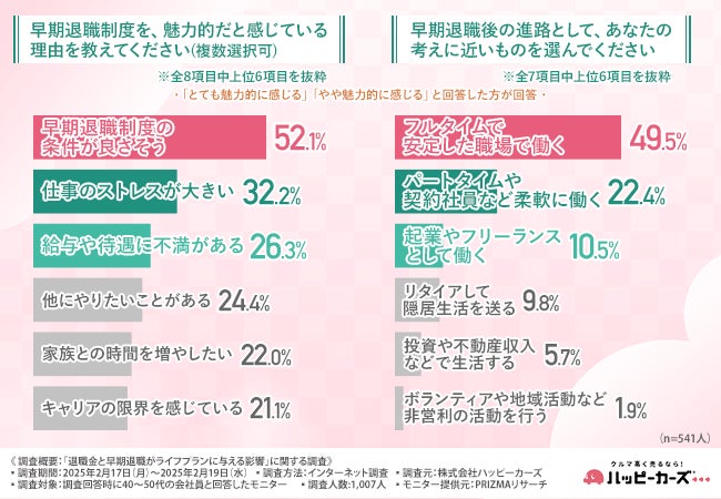 そこで今回、車買取り専門店の株式会社ハッピーカーズ(https://happycars.jp/)は、40~50代の会社員を対象に、「退職金と早期退職がライフプランに与える影響」に関する調査を実施しました。