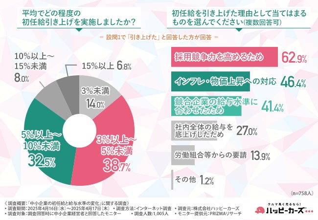株式会社ハッピーカーズ(本社所在地:神奈川県鎌倉市、代表取締役:新佛 千治)は、中小企業経営者を対象に「中小企業の初任給と給与水準の変化」に関する調査を実施しました。