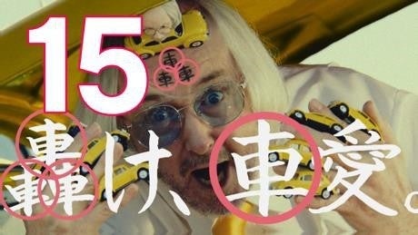 すると3台の車が実は「轟」の文字を模していたことがわかり、男は「轟けっ!車愛」と車の中心で愛を叫ぶ。